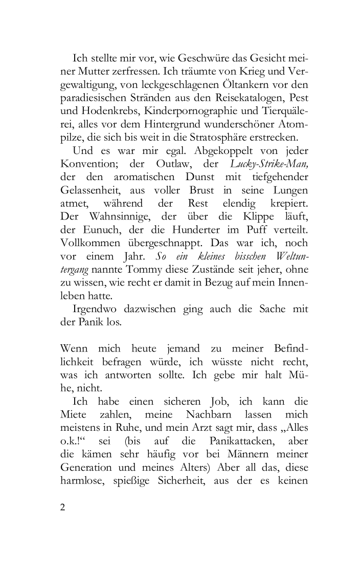 Bisher erschienen der Gedicht- und Bildband »Trigger« und der Roman »Durch den Nebel betrachtet sieht die Welt immer freundlicher aus«.